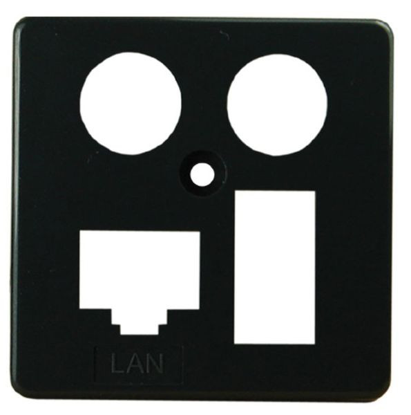 Zentralplatte zur Abdeckung der classic Basisdose, bestückt mit LAN/TDO Kommunikationsmodul, mit oder ohne Koaxmodul, 50x50mm, anthrazit RAL 7024, nur für den österreichischen Telefondienst TDO