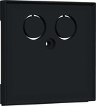 Zentralplatte zur Abdeckung der one. Basisdose und one.fiber Basisdose, bestückt mit 8/8 RJ45 Kommunikationsmodul (Buchse rechts), mit oder ohne Koaxmodul, 55x55mm, schwarz matt ähnlich RAL 9005