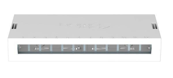 9,5 Zoll Verteilerfeldbox, 2-teiliges Kunststoffgehäuse zur Aufputzmontage, Hutschienenmontage und zum Einbau in Kommunikationsverteiler, Farbe reinweiss ähnlich RAL 9010, stapelbar auf homebox NX12 HW-NX12BASIC01, anreihbar, inkl. Aufnahmeschiene, Erdungskontakt und 2 Verbindungselementen, individuell bestückbar mit bis zu 12 Modulen im Keystoneformat, Abmessung: 246 x 110 x 41 mm