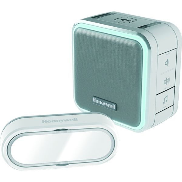 Serie 5 Einfache Installation - keine Verdrahtung erforderlich, kompaktes Design, Funkreichweite von bis zu 150 m (Bei Feldbedingungen gemessen, Wände, Zimmerdecken und Metallstrukturen reduzieren die maximale Reichweite), Honeywell-ActivLink für zuverlässige Funkreichweite, digital verbesserter Klang mit Lautstärkeregelung, maximale Lautstärke von 84 dB, Hörbereich bis zu 80 m, Auswahl von 6 Melodien, Schlaf-/Stummmodus, optische Meldung durch HALO-Lichtring mit zusätzlichem LED-Blitzlicht, inklusive Halterungen, bis zu 2 Jahre Batterielebensdauer. Set enthält: Funk-Gong und Klingeltaster (inkl. Batterie CR2032 des Klingeltasters)