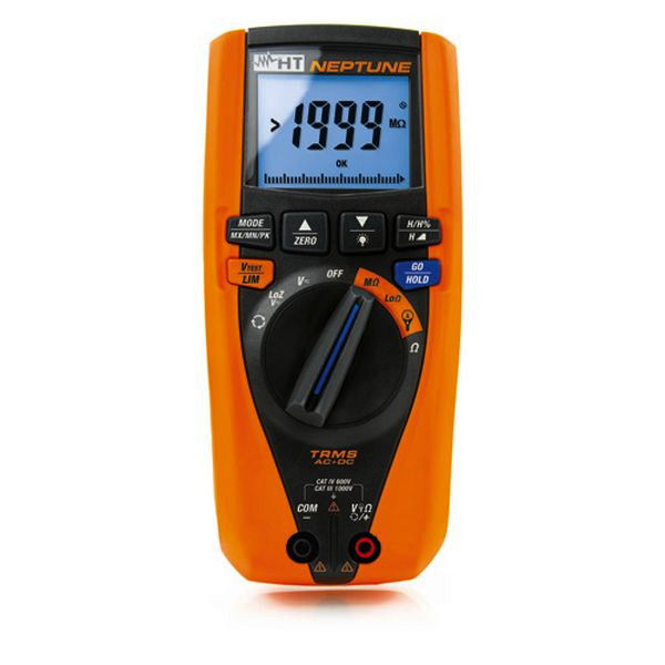 NEPTUNE ist ein Technologiemix aus einem Instrument für elektrische Sicherheitsprüfungen (Isolierung bis 1000 V und Niederohmmessung mit 200 mA), einem für Oberschwingungen und einem TRMS-Multimeter.