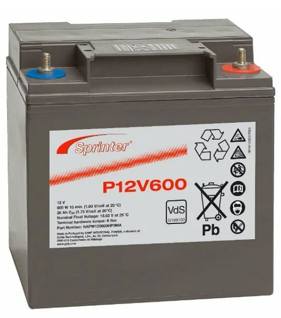 VdS-Zulassung: 199100 Network Power USV - Verlässliche Kapazitäten für Hochstromversorgung in unterbrechungsfreier Kontinuität Die extrem leistungsstarken und kompakten AGM-Batterien der Sprinter P-Serie sind die idealen Energielieferanten, wenn es um unterbrechungsfreie Energieversorgung geht. Sehr gute Hochstromeigenschaften verbunden mit hoher Lebensdauer. Wartungsfrei (kein Wasser nachfüllen) über die gesamte Brauchbarkeitsdauer. Leistungsbereich (15 Minuten) von 600 bis 2130 Watt. 10 Jahre Design Life bei einer Umgebungstemperatur von 20 °C (80% Restkapazität). EUROBAT Klassifikation: High Performance. Gehäusematerial gemäß UL 94-HB n Entwickelt unter Berücksichtigung der IEC 60896-21/-22. Gitterplatten in Blei-Calcium-Legierung. Extrem gasungsarm durch innere Gas-Rekombinationsrate von 99%. Niedrige Selbstentladungsrate, sehr kurze Wiederaufladezeiten. Keinerlei Transportbeschränkungen betriebsbereiter Blöcke, weder auf der Schiene, auf der Straße, zu Wasser noch in der Luft (nach IATA, DGR Satz A 67). Vollständig recycelbar. Aufgrund ihrer exzellenten Hochstromeigenschaften und der benutzerorientierten Leistungsabstufung eignen sich die Sprinter P-Batterien besonders für die USV-Anlagentechnik sowie in allen anderen Bereichen der Sicherheitsstromversorgung.
