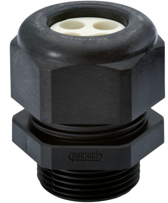 Mehrloch-Kabelverschraubung (Ex e) Polyamid, schwarz; M25, GL 11?mm, SW?33; Lochbild „2500“ - 4-fach; IP68; -20?°C…+85?°C; zertifiziert gemäß ATEX/IECEx usw.