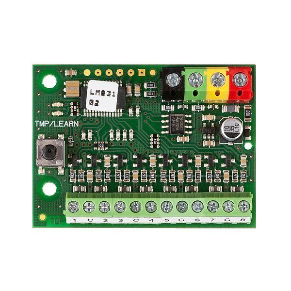 Bus-Eingangsmodul zur Anbindung von 8 verdrahteten Öffnungsmeldern (NC) bzw. 8 Meldelinien (mit bis zu 5 Magnetkontakten) an den Bus des System 9000. Belegt 8 Adressen im System. Kann auf 8 Meldelinien oder alternativ auf 7 Meldelinien und eine widerstandsüberwachte Sabotagelinie eingestellt werden. Linien einzeln einstellbar auf Reaktion Einbruch oder Panik. Länge einer Meldelinie max. 100m. Spannungsversorgung über Bus. Ruhestromaufnahme: 5mA, I-calc =10mA. Kann in einer UP-Dose, in der Montagedose 9000BD1/2/3 oder direkt in der Zentrale montiert werden. Abmessungen: 50 x 38 x 14mm. Lieferung inkl. 8 St. 1kOhm Widerstand.