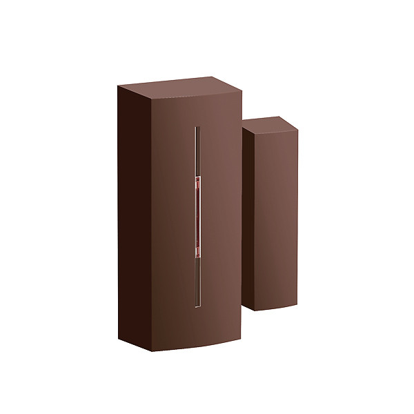 Funk-Öffnungsmelder braun, zur Montage an Türen oder Fenstern. Reagiert auf Entfernung des Magnets. Inkl. Sabotagesicherung. Belegt eine Adresse im System 9000. Spannungsversorgung: 1 x 3V CR123A Lithiumbatterie (mitgeliefert), Funkfrequenz: 868MHz, Betriebstemperatur: -10 bis +40°C. Farbe: braun. Abmessungen: 75 x 31 x 23mm, Magnet: 56 x 16 x 15mm. 2x 5mm Unterlegplättchen für das Magnetgehäuse sowie als Alternative ein D 9 x 3mm Ringmagnet werden mitgeliefert.