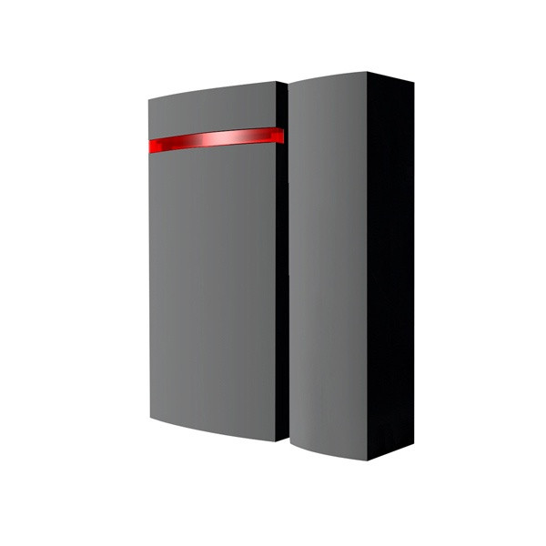 Funk-Öffnungsmelder mini, dunkelgrau, zur Montage an Türen oder Fenstern. Reagiert auf Entfernung des Magnets. Inkl. Sabotagesicherung. Belegt eine Adresse im System 9000. Spannungsversorgung: 1x 3V CR2032 Lithiumbatterie (mitgeliefert), Funkfrequenz: 868MHz, Betriebstemperatur: -10°C bis +40°C. Farbe: dunkelgrau (ähnl. anthrazitgrau RAL 7016). Abmessungen: 26 x 55 x 16mm, Magnet: 16 x 55 x 15mm. Je 2 St. 5mm Unterlegplättchen für das Magnetgehäuse und für das Meldergehäuse sowie als Alternative ein D 9 x 3mm Ringmagnet werden mitgeliefert.