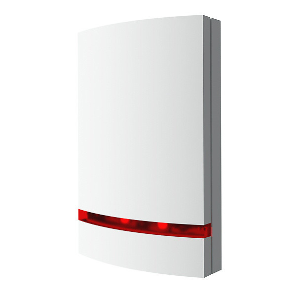 Außensirenen-Attrappe. Originalgehäuse der Sirene 9000AS passend zur Alarmanlage System 9000. Robustes ABS Kunststoffgehäuse in weiß mit roter Blende. Abmessungen: 300 x 200 x 72mm.