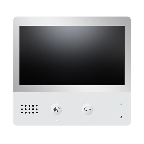 IP-Video-Innenstation mit 7 Zoll Touch-Bildschirm (sichtbare Bilddiagonale 17,6cm), Freisprechfunktion und 20 auswählbaren Klingeltönen. Rufweiterleitung mit Bild-Darstellung auf Smartphone-App (Voraussetzung: ein Router-Anschluss im System gemeinsam für alle Parteien, FRITZ!Box empfohlen). App für iOS (App Store) und Android (Play Store, Google-Version) kostenlos erhältlich (nicht Teil des Produkts, keine Zusage eines Servicelevels). Integrierter Ringspeicher für die letzten 120 Bilder: Aufnahme von Bildern automatisch und manuell, bei Einsatz einer microSD-Karte werden Videos mit einer Länge von 10 Sekunden aufgenommen. RJ45-LAN-Anschluss an PoE-Switch über CAT-Kabel, Spannungsversorgung über PoE: 802.3af, Leistungsaufnahme: max. 3,5W. Inkl. Anschluss für Etagenruftaster und Zusatzsummer (12V DC, max. 50mA). Interne Verbindung mit allen Innenstationen im System möglich. Integration von kompatiblen Netzwerkkameras über PoE-Switch möglich. Bildschirmauflösung: 800 x 480 Pixel. Farbe: weiß / silber. Lieferung inkl. Wandhalterung (für waagrechte Befestigung auf Schalterdose geeignet). Abmessungen: 174 x 161 x 21mm. Passendes Zubehör: Hörer IP220H, Tischhalterung VT200SM1W oder VT200SM1S, Powerline-Adapter mit PoE NWPL01-POE.