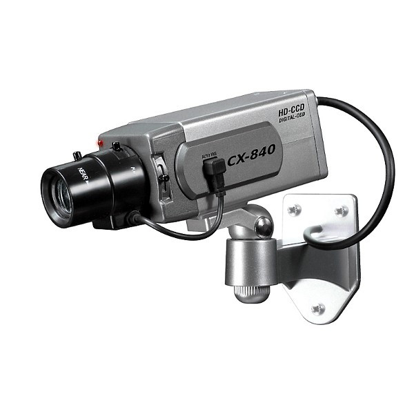 | Kurzbeschreibung | Kamera-Attrappe für Innen, grau, LED-Blinklicht, inkl. Warnaufkleber |
