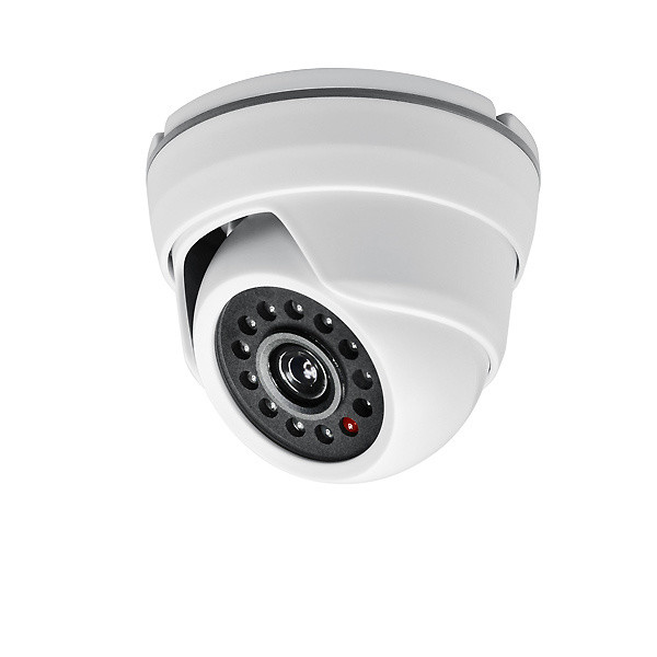 | Kurzbeschreibung | Kamera-Attrappe, Kugelform weiß für Innen, klein, LED-Blinklicht, Warnaufkleber |