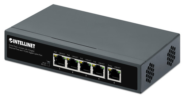 Strom- und Datenverbindung für bis zu vier PoE-Netzwerkgeräte Ein RJ45 Gigabit Uplink-Port PoE-Leistungsbudget 140 Watt Vier Power over Ethernet-Ports mit Ausgangsleistung bis zu 90 Watt pro Port 10 Gbit/s Switching-Kapazität 10/100/1000 Auto-Sensing-Ports erkennen automatisch die optimale Netzwerkgeschwindigkeit Kompatibel mit IEEE 802.3bt/at/af-konformen Powered Devices (PD) wie Netzwerkkameras, WLAN-Access Points, VoIP-Telefone und mehr Unterstützt IEEE 802.3bt-/at/af-Erkennung sowie Schutz vor Kurzschluss, Überladung und Überspannung Spart Zeit und Installationskosten durch die Übertragung von Daten und Strom über die vorhandenen Netzwerkkabel Unterstützt zwei PoE++ Modi, auswählbar per Schalter: IEEE 802.3bt und UPoE Auto-MDI-X und NWay Auto-Negotiation auf allen RJ45-Ports Unterstützt Jumbo Frames bis zu 9216 Bytes Store-and-Forward-Architektur Unterstützt 802.3x Flow Control für Voll-Duplex und Backpressure für Halb-Duplex Unterstützt 2.000 MAC-Adressen mit Auto-Learning und Auto-Aging 1 Mbit Zwischenspeicher Erdungspunkt zum Schutz vor externen elektrischen Spannungsspitzen Port-Überspannungsschutz bis zu 4 kV ESD-Schutz bis zu 8 kV (Luft) und 6 kV (Kontakt) Integrierte Wandmontagelöcher Gummifüße für rutschfesten Einsatz in Desktop-Anwendungen Lüfterfreie Konstruktion für leisen Betrieb Vollständig NDAA-konform 3 Jahre Garantie