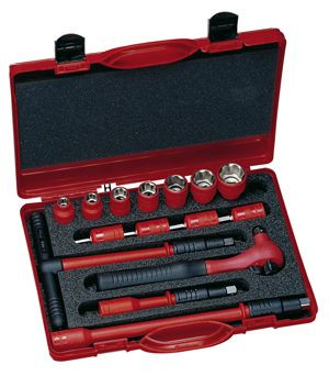 bestehend aus T-Schlüssel, Umschaltknarre, Verlängerung 125mm, Verlängerung 250mm, Steckschlüssel 8-10-13-14-17-19-22, Stiftschlüssel 4-5-6-8, Kunststoffkoffer