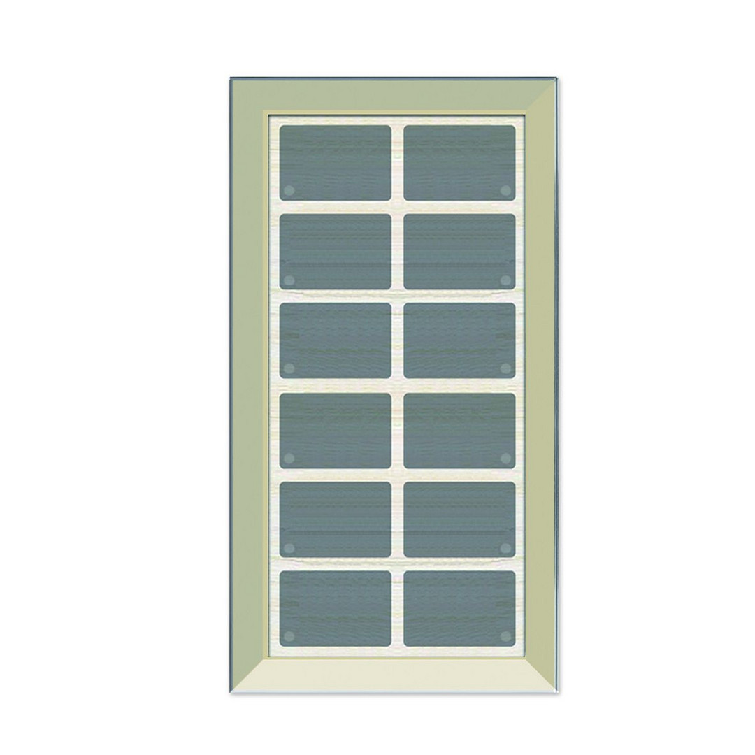 Das LCN-GTS12 ist ein Glas-Tastenfeld mit Bargraph-Anzeige. Es wird per mitgelieferter Montageplatte auf eine UP-Dose montiert und mit zwei Schiebern fest verankert. Der Anschluss erfolgt über den T-Anschluss eines beliebigen LCN-Moduls ab Version 170212. Die 12 kapazitiv arbeitenden Sensorflächen sind hinter einer 3 mm starken Glasfront angeordnet. Eine leichte Berührung der Oberfläche genügt, um verschiedene Funktionen auszulösen. Eine in jede der 12 Sensorflächen integrierte Status-LED informiert über den aktuellen Status beliebiger Aktoren oder Sensoren im Gebäude. Dabei sind vier Zustände möglich. Ein Corona®-Lichtkranz mit 12 weißen LEDs dient der dekorativen Wandbeleuchtung (LCN-NUI erforderlich) und als dezentes Orientierungslicht, so dass sich das LCN-GTS12 auch bei geringem Umgebungslicht komfortabel bedienen lässt. Mit der Tasten-Hinterleuchtung (optional mit LCN-NUI) lässt sich das LCN-GTS12 auch bei geringem Umgebungslicht komfortabel bedienen. Die 15-stellige Bargraph-Anzeige ermöglicht die Anzeige analoger Ist- und Sollwerte. Die individuellen Beschriftungen für das LCN-GTS12 werden auf eine Folie oder Papier übertragen und durch einen kleinen Schlitz hinter der Glasfläche platziert. Die Beschriftung kann jederzeit neu erstellt werden, so dass Änderungen in der Tastenbelegung kein Problem sind. Leicht verständliche Symbole und Vorlagen für die Folie werden mitgeliefert. Die Sensorflächen des LCN-GTS12 reagieren kapazitiv auf Berührung der Glasoberfläche. Je nach Berührungsdauer wird ein entsprechendes LCN-Steuerkommando (KURZ, LANG oder LOS) versendet. Das Steuerkommando wird über den im Lieferumfang enthaltenen Montagerahmen an den T-Anschluss eines LCN-Moduls übertragen. Die 12 Status-LEDs in den Sensorflächen werden individuell über den T-Anschluss gesteuert und über LCN-PRO konfiguriert (AN, AUS, BLINKEN, FLACKERN).