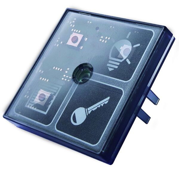 Der LCN-MT4 ist ein mechanischer, 4fach Taster für den Einsatz an LCN-Modulen, ab Version 17070A (Juli 2013). Durch die Integration des IR-Empfängers kann der LCN-MT4 die Signale der LCN-Fernbedienungen verarbeiten. Die vier Tasten verfügen zusätzlich über je eine integrierte Status-LED und eine flächige Hinterleuchtung. Ein Corona®-Lichtkranz mit weißen LEDs dient als dezentes Orientierungslicht, wenn ein LCN-G55 Rahmen verwendet wird. So kann auch bei geringem Umgebungslicht der Taster komfortabel bedient werden.