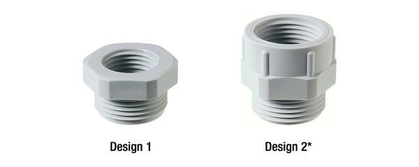 Reduktion, zum Reduzieren einer Gewinde- oder Durchgangsbohrung auf eine kleinere Gewindegröße , RAL 7035, Zubehör Pg Kunststoff