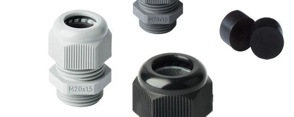 Kabelverschraubung mit Dichteinsatz ohne Bohrung, Einsatz als Reserve-Kabelverschraubung oder als Schutz gegen Staub und Feuchtigkeit, Dichteinsatz eignet sich zum selbst Bohren von individuellen Durchgangslöchern, Anschlussgewinde Standardlänge, RAL 9005, Kabelverschraubung Metrisch Kunststoff
