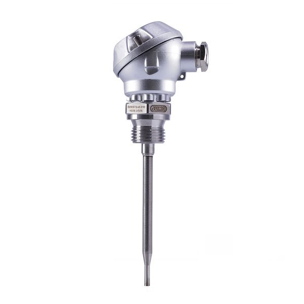 Das einschraubbare Widerstandsthermometer ermöglicht durch die Temperaturabhängigkeit des elektrischen Widerstandes seines eingebauten Platin-Sensors eine Temperaturmessung in gasförmigen als auch flüssigen Medien. Die bewährte Einbauform gewährleistet dabei eine zuverlässige Dichtheit bei Unter- und Überdruck. Das durchgehende Schutzrohr und der Prozessanschluss sind aus Edelstahl 1.4571 gefertigt und schützen den Messeinsatz gegen chemische Einflüsse und mechanische Beschädigungen. Das Widerstandsthermometer eignet sich daher unter anderem hervorragend für Einsatzgebiete in der Klima- und Kältetechnik sowie im Heizungs- Ofen- und Apparatebau. Das Widerstandsthermometer nach DIN EN 60751 (Klasse B) ist als 1 x Pt100 in Zweileiterschaltung ausgeführt und für Temperaturen von -50 bis +200 °C ausgelegt. Der Anschlusskopf in Form J ist aus Alu-Druckguss gefertigt. Dieser verfügt über eine Kabelverschraubung M16 x 1,5 und ist für Temperaturen zwischen -40 bis +100 °C ausgelegt. Das Schutzrohr mit der Abmessung 6,0 x 100 mm ist speziell für die Luftmessung an der Spitze nochmals auf 3,3 mm abgesetzt. Eine Verschraubung mit Gewinde G 1/2 Zoll dient als Prozessanschluss.