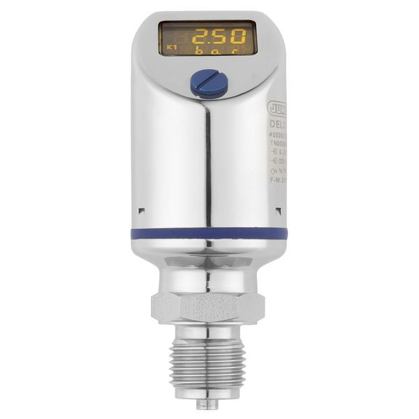 Der hochpräzise Druckmessumformer mit Anzeige, Schaltkontakt und Analogausgang erfüllt zugleich hygienische und technische Anforderungen. Die werksseitig eingestellten Nennmessbereiche können im Verhältnis 1:4 umskaliert werden und bieten dem Anwender mit nur einem Messinstrument mehrere Messaufgaben. Der Prozessdruck wird durch ein großes, positiv beleuchtetes LC-Display visualisiert. Die Konfiguration kann einfach am Messinstrument oder über das komfortablere Setup- Programm durchgeführt werden. Ein hygienisches Design, medienberührende Teile aus Edelstahl, sowie ein totraumfreies System verhindern mikrobielle Kontamination und gewährleisten somit höchste Prozesssicherheit. Durch das um +/-160° verdrehbare Gehäuse und der um 180° drehbaren Anzeige kann das Messinstrument individuell und bedienerfreundlich ausgerichtet werden. Anwendung findet der Druckmessumformer in verschiedenen Bereichen der Nahrungs- und Genussmittelindustrie (Brauereien/Molkereien), pharmazeutische Industrie, CIP-/SIP-Anlagen, Maschinen- und Anlagenbau, sowie dem Klima- und Kälteanlagenbau. Das Gerät hat einen PNP Schaltausgang sowie einen 4 bis 20 mA Dreileiter Analogausgang. Der Prozessanschluss besteht aus Edelstahl 316 L. Der elektrische Anschluss erfolgt durch einen Rundstecker M12 x 1.