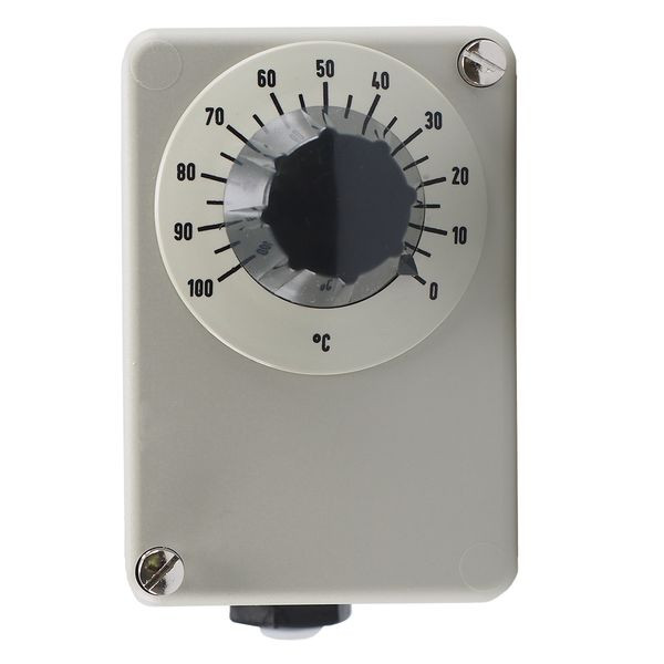 Durch sein schlagfestes Gehäuse mit hochwertigem Kunststoffdeckel und Aludruckguss Unterteil ist der 1-polige mechanische Aufbaubauthermostat sehr robust und kann auch unter rauen Bedingungen eingesetzt werden. Das verwendete Messsystem arbeitet nach dem Flüssigkeitsausdehnungsprinzip und kann bis zu einer maximal zulässigen Fühlertemperatur von 125 °C problemlos eingesetzt werden. Das Tauchrohr aus Messing, vernickelt, hat einen Durchmesser von 8 mm. Die Befestigung erfolgt durch ein Gewinde G 1/2 Form A nach DIN 3852/2. Die maximal zulässige Umgebungstemperatur am Gehäuse (Schutzart IP54) beträgt 80 °C. Mit Hilfe eines Sollwertstellers kann die gewünschte Abschalttemperatur auf einer Skala einfach eingestellt werden. Der Temperaturregler zeichnet sich durch eine hohe Schaltpunktgenauigkeit von +/-1,5 % im oberen Skalendrittel aus. Ein entscheidender Vorteil ist es, dass zur Temperaturmessung keine zusätzliche Hilfsenergie benötigt wird. Der elektrische Anschluss erfolgt durch Schraubklemmen direkt am verbauten Microschalter, der eine maximal zulässige Schaltleistung von AC 230 Volt / 6 A direkt schalten kann. Der Thermostat hat eine Schaltdifferenz (Hysterese) von ca. 1,5 % des Skalenumfangs und schaltet nach Unterschreiten der Abschalttemperatur um diesen Wert automatisch wieder zurück in den Ursprungszustand. Der Temperaturregler ist sehr flexibel einsetzbar und wir sowohl in der Heizungs-, Klima-, und Lüftungstechnik als auch in der Kunststoffindustrie, dem Apparate- und Maschinenbau sowie im Ofenbau und zur Temperaturüberwachung in Labor und Klimaschränken angewandt. Das Gerät ist zugelassen gemäß DIN EN 14597 und hat eine EAC Zulassung.