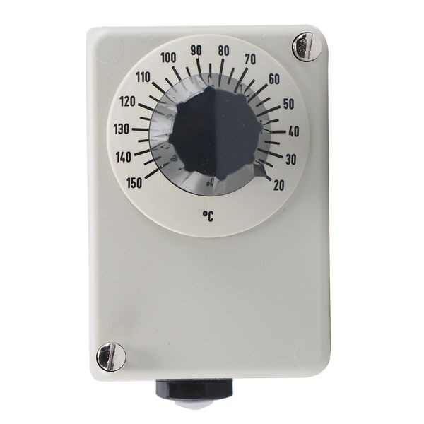 Durch sein schlagfestes Gehäuse mit hochwertigem Kunststoffdeckel und Aludruckguss Unterteil ist der 1-polige mechanische Aufbaubauthermostat sehr robust und kann auch unter rauen Bedingungen eingesetzt werden. Das verwendete Messsystem arbeitet nach dem Flüssigkeitsausdehnungsprinzip und kann bis zu einer maximal zulässigen Fühlertemperatur von 175 °C problemlos eingesetzt werden. Das Tauchrohr aus Messing, vernickelt, hat einen Durchmesser von 8 mm. Die Befestigung erfolgt durch ein Gewinde G 1/2 Form A nach DIN 3852/2. Die maximal zulässige Umgebungstemperatur am Gehäuse (Schutzart IP54) beträgt 80 °C. Mit Hilfe eines Sollwertstellers kann die gewünschte Abschalttemperatur auf einer Skala einfach eingestellt werden. Der Temperaturregler zeichnet sich durch eine hohe Schaltpunktgenauigkeit von +/-1,5 % im oberen Skalendrittel aus. Ein entscheidender Vorteil ist es, dass zur Temperaturmessung keine zusätzliche Hilfsenergie benötigt wird. Der elektrische Anschluss erfolgt durch Schraubklemmen direkt am verbauten Microschalter, der eine maximal zulässige Schaltleistung von AC 230 Volt / 10 A direkt schalten kann. Der Thermostat hat eine Schaltdifferenz (Hysterese) von ca. 3 bis 4 % des Skalenumfangs und schaltet nach Unterschreiten der Abschalttemperatur um diesen Wert automatisch wieder zurück in den Ursprungszustand. Der Temperaturregler ist sehr flexibel einsetzbar und wird sowohl in der Heizungs-, Klima-, und Lüftungstechnik als auch in der Kunststoffindustrie, dem Apparate- und Maschinenbau sowie im Ofenbau und zur Temperaturüberwachung in Labor und Klimaschränken angewandt. Das Gerät ist zugelassen gemäß DIN EN 14597 und hat eine EAC Zulassung.