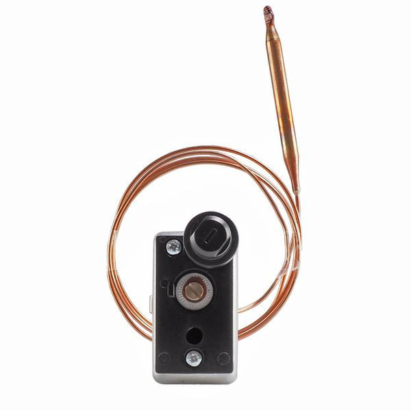 Durch sein verzinktes Stahlblechgehäuse ist der 1-polige mechanische Einbauthermostat sehr robust und kann auch unter rauen Bedingungen eingesetzt werden. Das verwendete Messsystem arbeitet nach dem Flüssigkeitsausdehnungsprinzip und kann bis zu einer maximal zulässigen Fühlertemperatur von 110 °C problemlos eingesetzt werden. Der glatte Rundfühler aus Kupfer hat einen Durchmesser von 6 mm bei einer Fühlerlänge von ca. 84 mm. Die Fernleitung des Thermostaten ist ebenfalls aus Kupfer und kann unter Beachtung eines Biegeradius von 5 mm flexibel verlegt werden. Die maximal zulässige Umgebungstemperatur am Schaltkopf (Schutzart IP00) beträgt 80 °C. Die Schaltkopfbefestigung erfolgt mit Hilfe einer Zentralbefestigung durch eine Befestigungsmutter M10 x 1. Der Abschaltpunkt ist werksseitig fest eingestellt. Der Sicherheitstemperaturbegrenzer zeichnet sich durch eine hohe Schaltpunktgenauigkeit von +0/-5 K aus. Ein entscheidender Vorteil ist es, dass zur Temperaturmessung keine zusätzliche Hilfsenergie benötigt wird. Der elektrische Anschluss erfolgt an den Flachsteckern (A 6,3 x 0,8 DIN 46244) des Schaltsatzes, der eine maximal zulässige Schaltleistung von AC 230 Volt / 16 A direkt schalten kann. Der Thermostat hat eine Entriegelungsdifferenz von ca. 10 K, nach deren Unterschreitung das Gerät einfach durch betätigen eines Tasters entriegelt werden kann. Der Temperaturbegrenzer ist sehr flexibel einsetzbar und wird sowohl in der Heizungs-, Klima-, und Lüftungstechnik als auch in der Kunststoffindustrie, dem Apparate- und Ofenbau sowie zur Temperaturüberwachung in Labor und Klimaschränken angewandt. Das Gerät ist zugelassen gemäß DIN EN 14597 sowie Druckgeräterichtlinie und hat eine UL und EAC Zulassung.