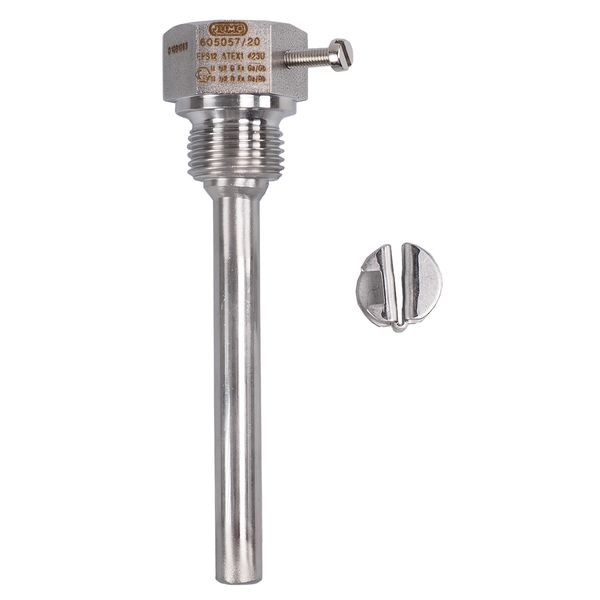Die Schutzhülse zum Einschrauben aus Edelstahl (Werkstoff Nr. 1.4571) hat einen Durchmesser von 10 mm und ist passend für einen Fühler mit Durchmesser 6 mm. Befestigung erfolgt durch ein Gewinde G 1/2 Form A nach DIN 3852/2. Die Schutzhülse ist durch Ihre Wandstärke von 1,5 mm zur Ex-Zonentrennung geeignet. Die Hülse ist hat eine ATEX Zulassung gemäß EN 600079 und wird mit einem Abnahmeprüfzeugnis 3.1 gemäß DIN EN 10204 geliefert. Die maximal zulässige Druckbelastung bei einer Temperatur von 100°C beträgt 74 bar. Die Hülse kann in explosionsgefährdeten Bereichen eingesetzt werden.