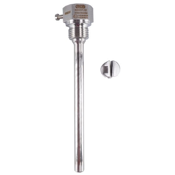Die Schutzhülse zum Einschrauben aus Edelstahl (Werkstoff Nr. 1.4571) hat einen Durchmesser von 10 mm und ist passend für einen Fühler mit Durchmesser 6 mm. Befestigung erfolgt durch ein Gewinde G 1/2 Form A nach DIN 3852/2. Die Schutzhülse ist durch Ihre Wandstärke von 1,5 mm zur Ex-Zonentrennung geeignet. Die Hülse ist hat eine ATEX Zulassung gemäß EN 600079 und wird mit einem Abnahmeprüfzeugnis 3.1 gemäß DIN EN 10204 geliefert. Die maximal zulässige Druckbelastung bei einer Temperatur von 100°C beträgt 74 bar. Die Hülse kan in explosionsgefährdeten Bereichen eingesetzt werden.
