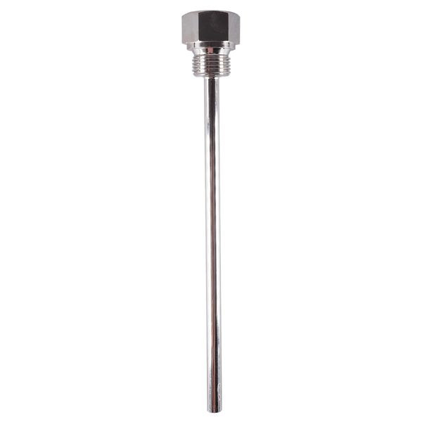 Die Schutzhülse zum Einschrauben aus Messing vernickelt ist passend für einen Fühler mit Durchmesser 6 mm. Montiert wird die Hülse mit einem Gewinde G 1/2 Form A gemäß DIN 3852/2. Die maximale Druckbelastbarkeit bei einer Temperatur von 150 °C beträgt 48 bar.