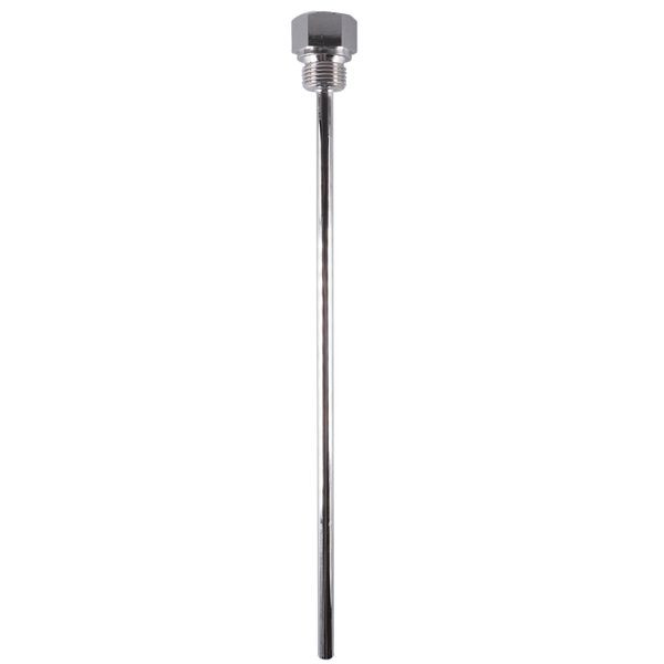 Die Schutzhülse zum Einschrauben aus Messing vernickelt ist passend für einen Fühler mit Durchmesser 6 mm. Montiert wird die Hülse mit einem Gewinde G 1/2 From A gemäß DIN 3852/2. Die maximale Druckbelastbarkeit bei einer Temperatur von 150 °C beträgt 48 bar.