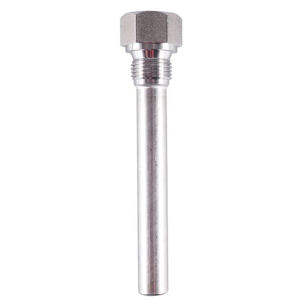 Die Schutzhülse zum Einschrauben aus Edelstahl (Werkstoff Nr. 1,4571) ist passend für zwei Fühler mit Durchmesser 6 mm. Montiert wird die Hülse mit einem Gewinde G 1/2 Form A gemäß DIN 3852/2. Die maximale Druckbelastbarkeit bei einer Temperatur von 150 °C beträgt 48 bar.