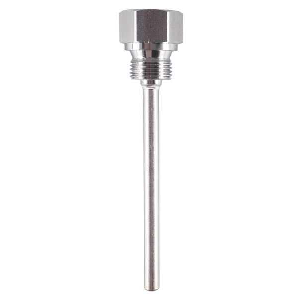 Die Schutzhülse zum Einschrauben aus Edelstahl (Werkstoff Nr. 1,4571) ist passend für einen Fühler mit Durchmesser 6 mm. Montiert wird die Hülse mit einem Gewinde G 1/2 Form A gemäß DIN 3852/2. Die maximale Druckbelastbarkeit bei einer Temperatur von 150 °C beträgt 88 bar.