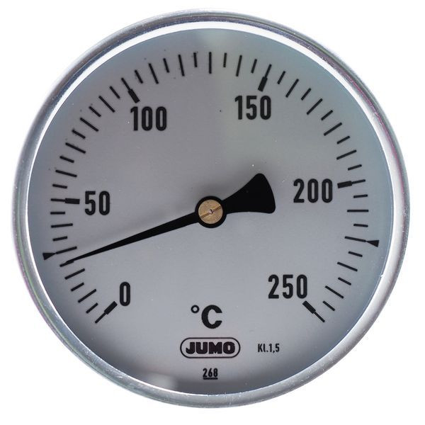 | Kurzbeschreibung | Bimetallthermometer, Klasse 1,5, Anzeigebereich 0 bis 250°C, Einbaulänge 200 mm |
