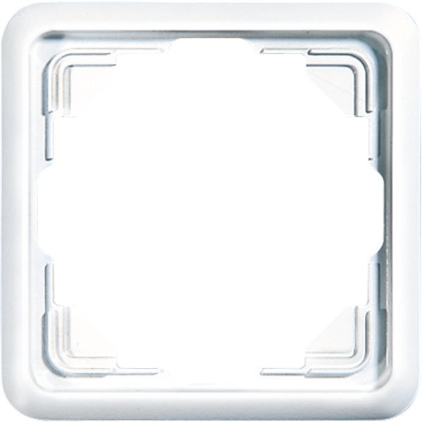Schraubbefestigung möglich Rahmen 1fach, alpinweiß für waagerechte und senkrechte Kombination IP20 Material: Duroplast Maße (B x H): 81 x 81 mm