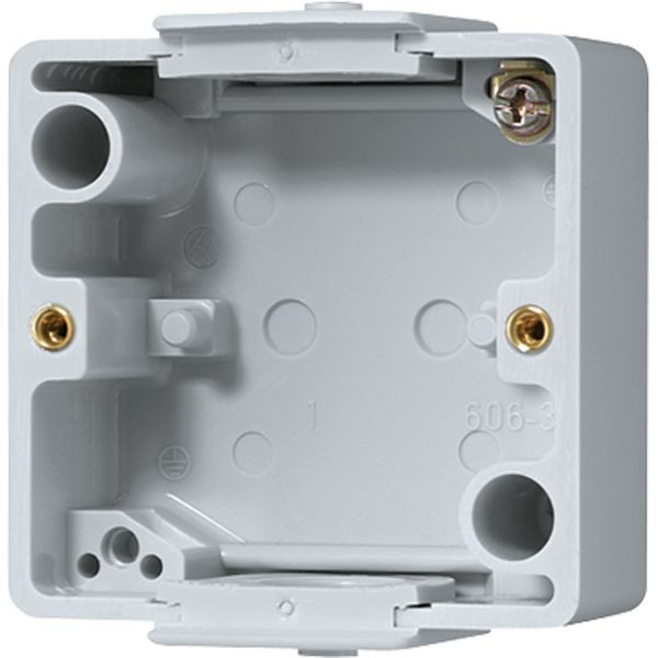 | Kurzbeschreibung | Montagegehäuse 1fach, 2 Leitungseinführungen (geschlossen), WG 600, IP 44, Duroplast, grau, senkrechte und waagerechte Montage |