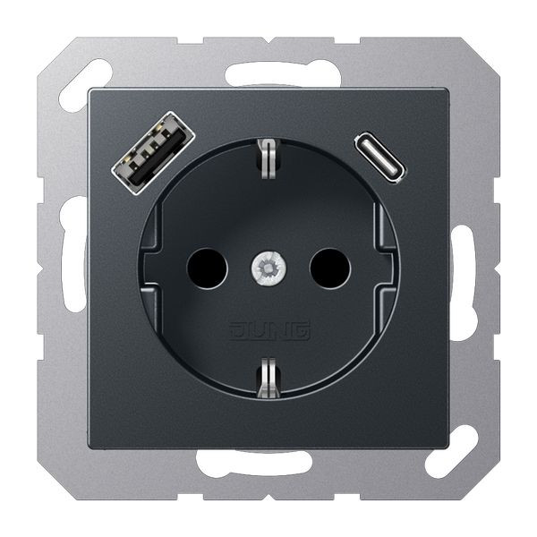 | Kurzbeschreibung | SCHUKO®-Steckdose, 16 A 250 V ~, mit USB-Ladegerät, 1 x Typ A + 1 x Typ C, SAFETY+, Serie A, anthrazit matt |