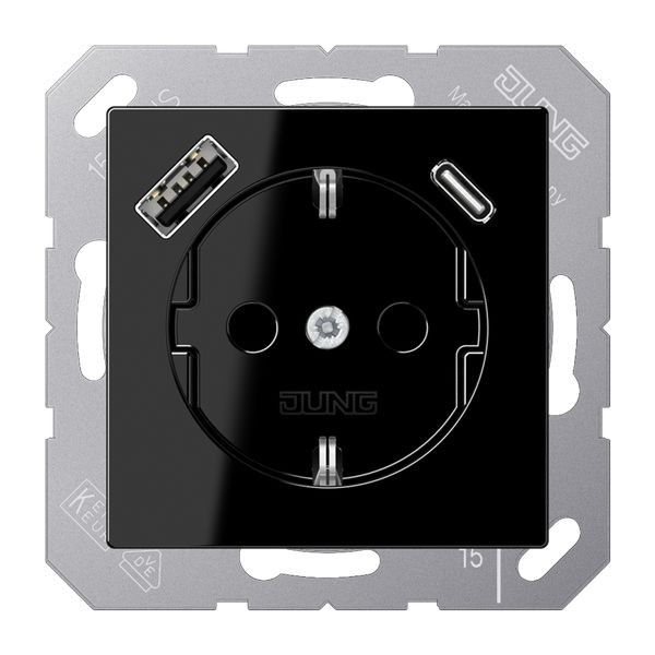 | Kurzbeschreibung | SCHUKO®-Steckdose, 16 A 250 V ~, mit USB-Ladegerät, 1 x Typ A + 1 x Typ C, SAFETY+, Serie A, schwarz |
