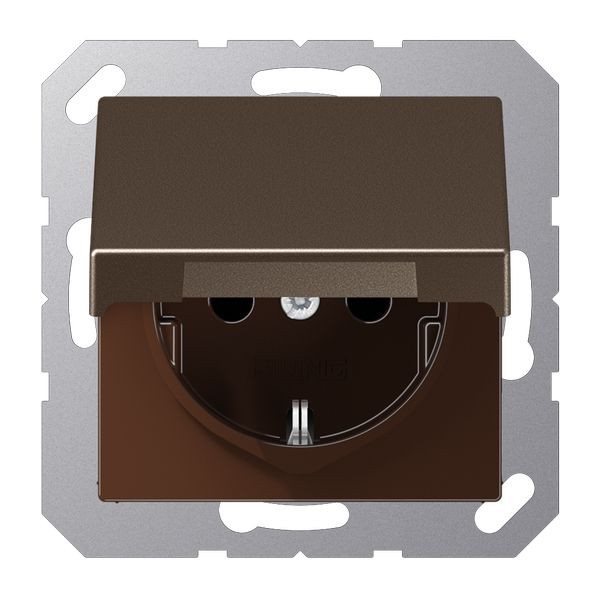 | Kurzbeschreibung | SCHUKO®-Steckdose, 16 A 250 V ~, Klappdeckel, Thermoplast lackiert, Serie A, mokka |