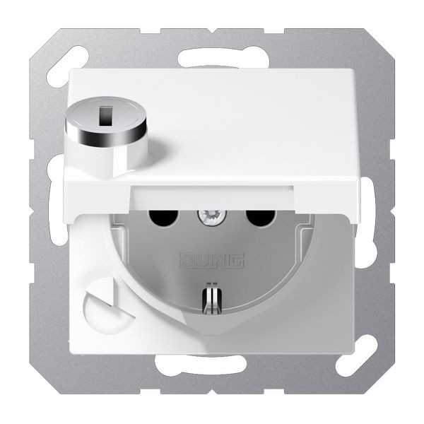 | Kurzbeschreibung | SCHUKO®-Steckdose, 16 A 250 V ~, SAFETY+, Klappdeckel, mit Sicherheitsschloss, Thermoplast, Serie A, alpinweiß |