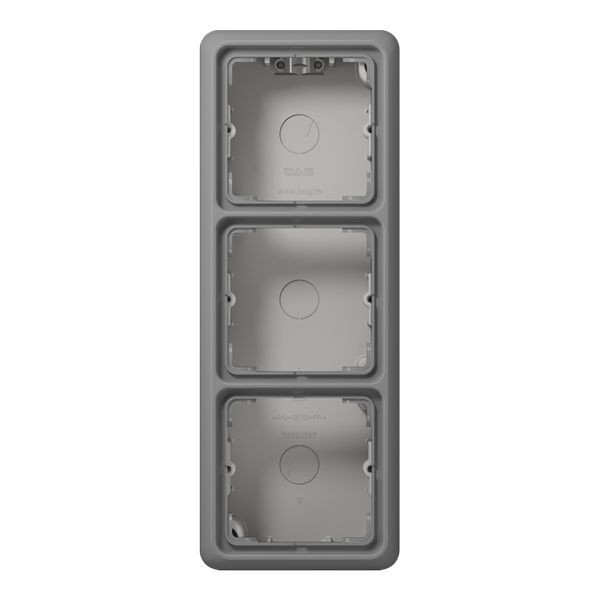 | Kurzbeschreibung | Aufputz-Kappe 3fach, CD 500 Aufputz, Duroplast, grau, senkrechte und waagerechte Montage |