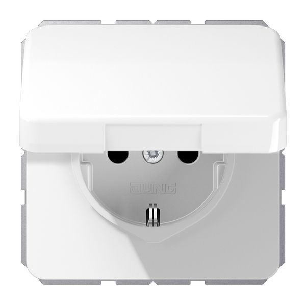 | Kurzbeschreibung | SCHUKO®-Steckdose, 16 A 250 V ~, SAFETY+, Klappdeckel, Thermoplast, Serie CD, alpinweiß |