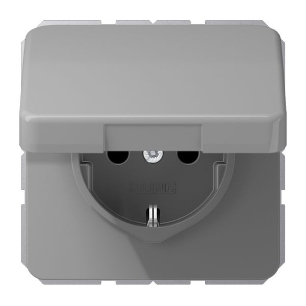 | Kurzbeschreibung | SCHUKO®-Steckdose, 16 A 250 V ~, Klappdeckel, Thermoplast, Serie CD, grau |