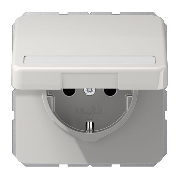 | Kurzbeschreibung | SCHUKO®-Steckdose, 16 A 250 V ~, mit Schriftfeld, SAFETY+, Klappdeckel, Thermoplast, Serie CD, lichtgrau |