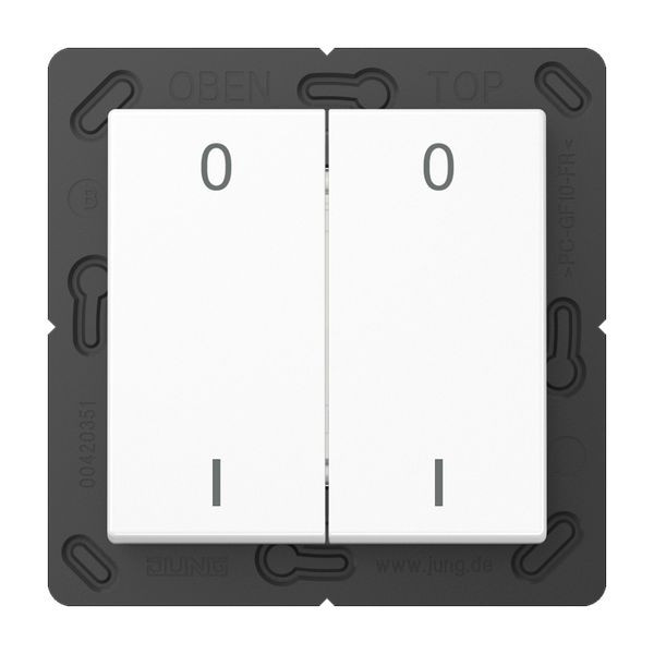 | Kurzbeschreibung | EnOcean Funk-Wandsender, 4-kanalig, Symbole 0 I, Thermoplast, Serie AS/A, alpinweiß |