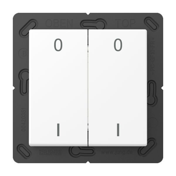 | Kurzbeschreibung | EnOcean Funk-Wandsender, 4-kanalig, Symbole 0 I, Thermoplast lackiert, Serie A, schneeweiß matt |