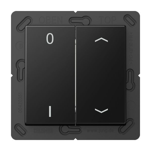 | Kurzbeschreibung | EnOcean Funk-Wandsender, 4-kanalig, Symbole 0 I und Pfeil, Thermoplast lackiert, Serie A, graphitschwarz matt |