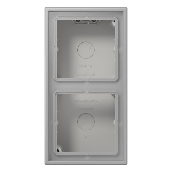 | Kurzbeschreibung | Aufputz-Kappe 2fach, LS CUBE, Duroplast lackiert, gris moyen (32012), senkrechte und waagerechte Montage |