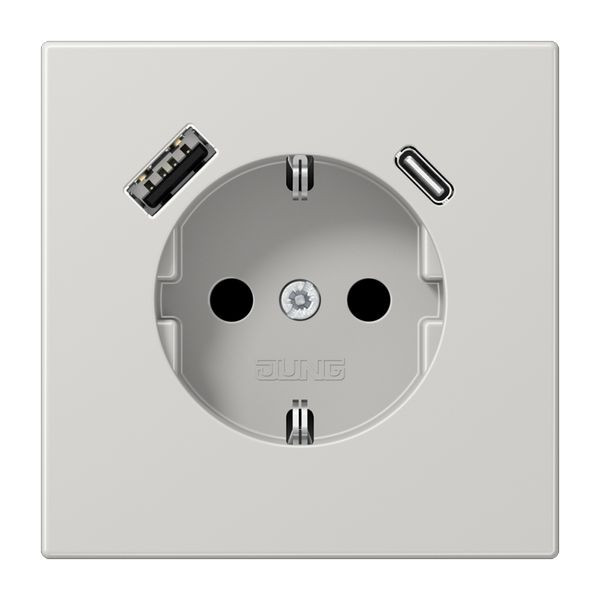 | Kurzbeschreibung | SCHUKO®-Steckdose, 16 A 250 V ~, mit USB-Ladegerät, 1 x Typ A + 1 x Typ C, SAFETY+, Serie LS, lichtgrau |