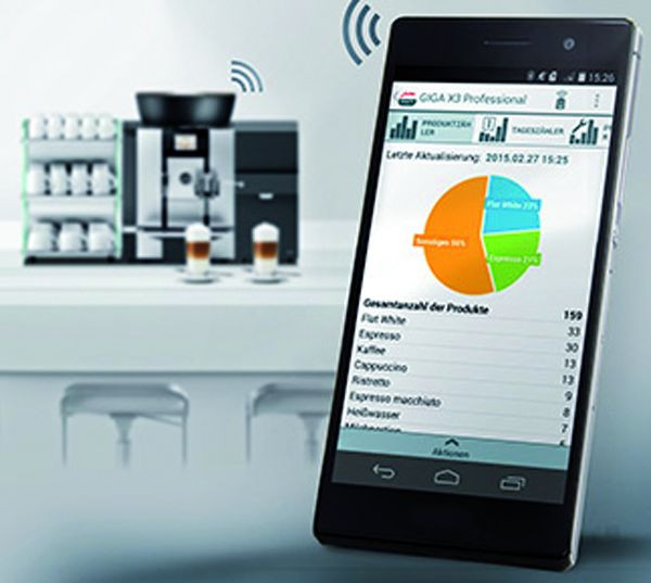 Via Bluetooth® werden relevante Informationen über Zählerstände und Meldungen (Bohnen füllen, Schale leeren, etc.) ans Smartphone übermittelt, dort können diese dank der kostenlosen »JURA Connect«-App jederzeit eingesehen und auf Wunsch an definierte Mailadressen übermittelt werden, inkl. einem Sender für den Vollautomaten, kompatibel mit Android (ab Version 4.4) & iOS (ab Version 7.0), Bluetooth 4.0, passend für GIGA X3/X3c Professional, GIGA X7/X7c Professional, GIGA X8/X8c Professional, GIGA X9/X9c Professional, XJ6 Professional
