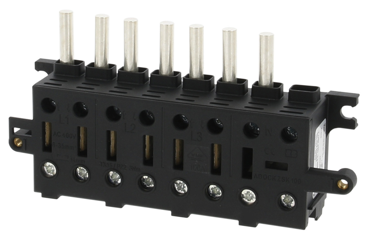 | Kurzbeschreibung | ADOCK Zähleranschlussklemme 100A inkl. montierten Systemstiften |