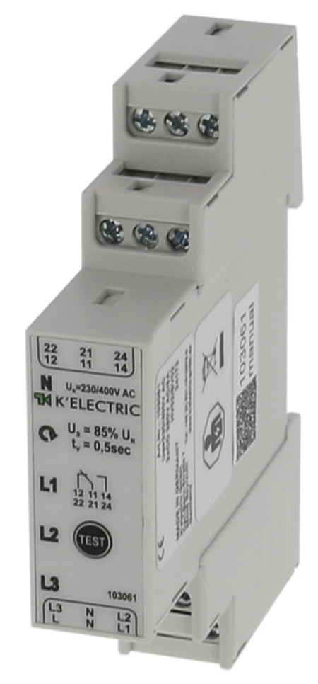 Unterspannungsmessrelais mit Drehfeldanzeige und Testtaste,